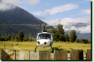 ここからはフォックス氷河の上空を下っていくだけ。 そんなに時間がかからずもとのヘリポートに無事着陸できた。 乗る前は墜ちたらどうしようとか考えてましたが、 乗ってからは、そんなことを考える暇もなく、また気流も操縦も安定していたので、まったく不安感は無かった。 |